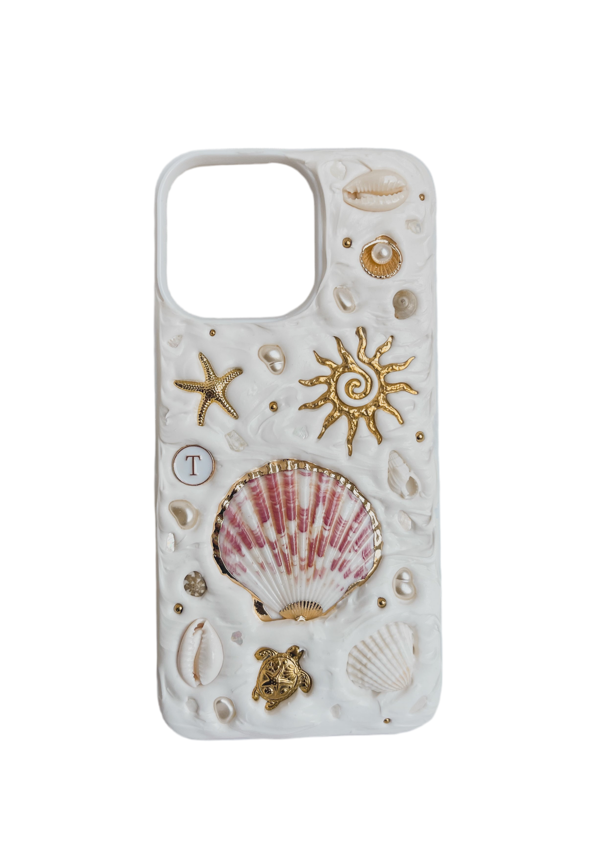 À noter : chaque modèle de téléphone a une taille différente, et chaque coquillage que nous utilisons est unique — les décorations peuvent donc légèrement varier en couleur, forme ou emplacement.